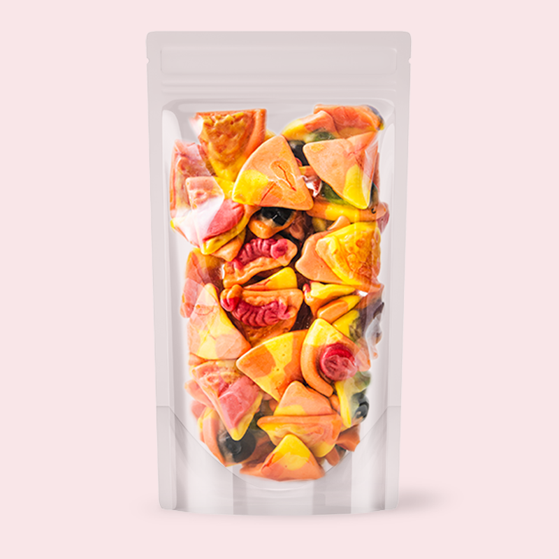 🍕 Tranches de pizza aux fruits gélifiés – du plaisir fruité dans des tranches de pizza ! Les mini pizzas détaillées combinent un design emblématique avec des saveurs fruitées telles que la fraise, l'orange et le citron. Une friandise douce et sucrée qui rend chaque moment de collation spécial - idéale pour les fêtes, à emporter ou simplement entre les repas ! 🍕